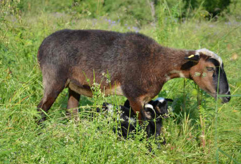 Ein Krainer Lamm das gerade ein bisschen Gras mümmelt