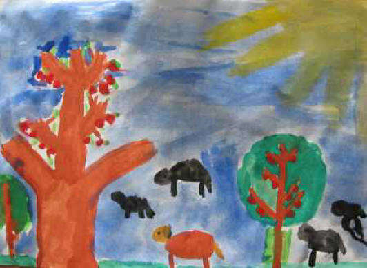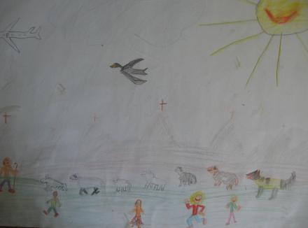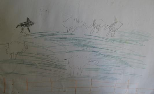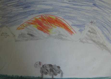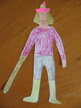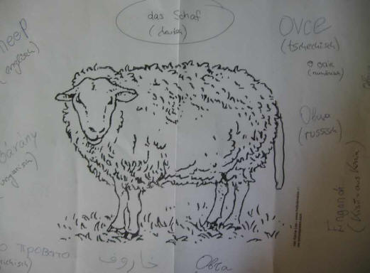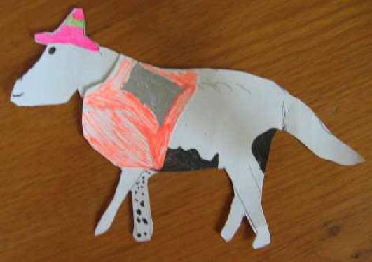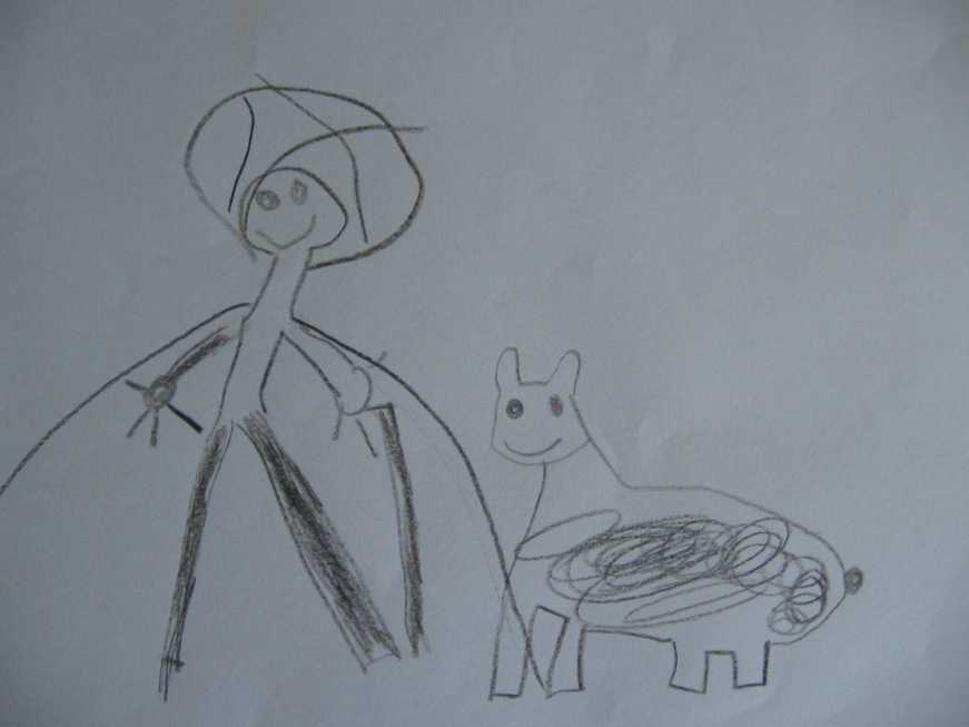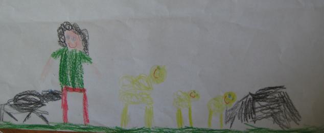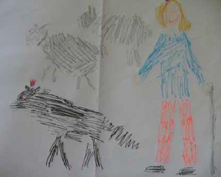 Das sind Hütehündin Ronja mit Warnweste - und die Schäferin mit dem Hütestab bei der Schafwanderung