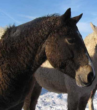 Das Nokota Horse ist vermutlich verwandt mit dem Curly Horse und ebenfalls extrem selten geworden, allerdings nicht hypoallergen. Weitere Infos siehe logo oder im Kasten.