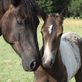 Magpies Enkeltochter Peach mit Mama Fairchild Moondust - Foto: Nicole Schoen Die Sioux benennen ihre Pferde oft nach Tieren, speziell Vogelarten sind beliebt. Die wunderbare Curly Horse Züchterin Barbara Carroll zollt dieser Tradition großen Respekt, viele ihrer Curly Horses haben indianische Namen, auch in Magpies Familie. So ist Mato Sapa der schwarze Bär, Zintkala bedeutet Vogel auf Lakota, Mikade ist eine Fasanenart und Magpie die schwarze Elster. Stag Creek hat leider sein Curly Zuchtprogramm nach fast 20 Jahren beendet. Wir bedanken uns für die großartigen Pferde aus Barbaras Zucht und auch für ihre schönen Fotos, die wir freundlicherweise hier verwenden dürfen.