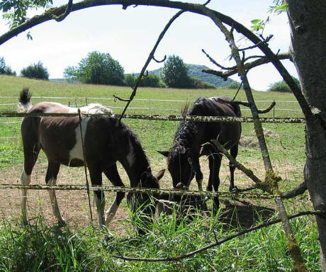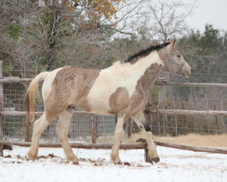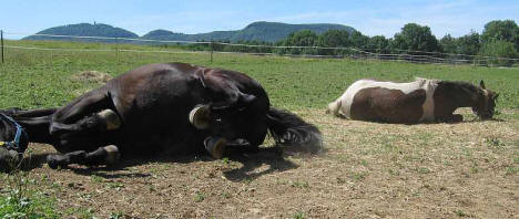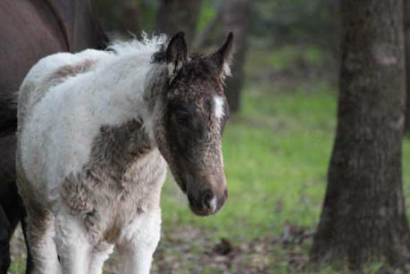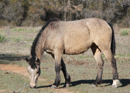 Inzwischen ist noch Magpies Enkeltochter Peach zu uns gekommen. Peach ist die einzige und dazu noch superlockige Tochter von Mikade. Auch Peachs Mama hat Geschichte: Die blue-buckskin Curlystute Fairchild Moondust ist noch wild geboren. Moondust's Mutter ist eine Nakota Stute namens Nakotas New Beginning aus der Herde von Harold Fairchild.