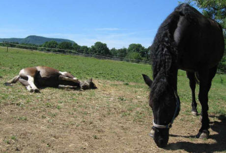 Sessalaney 2016 auf Stag Creek- Foto: Barbara Carroll Jährling Peach kommt an - Magpie und Enkeltochter lernen sich kennen